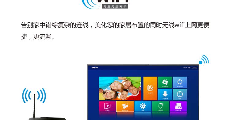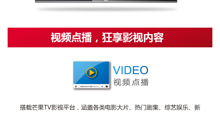 功能:2K全高清智能网络电视,安卓智能系统,无线WIFI